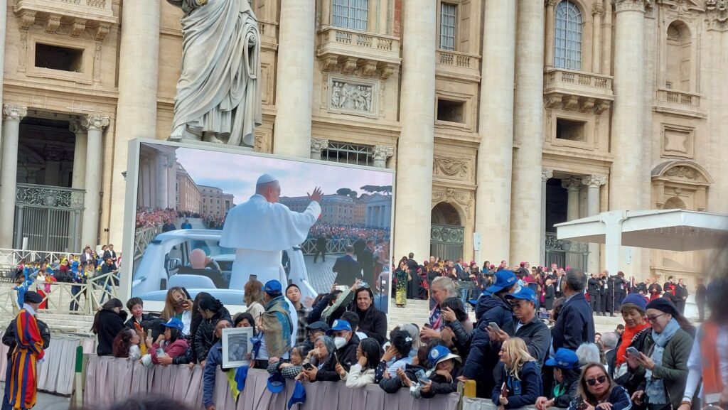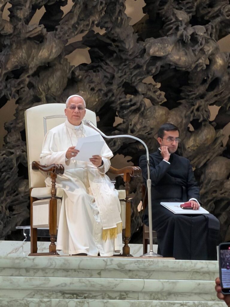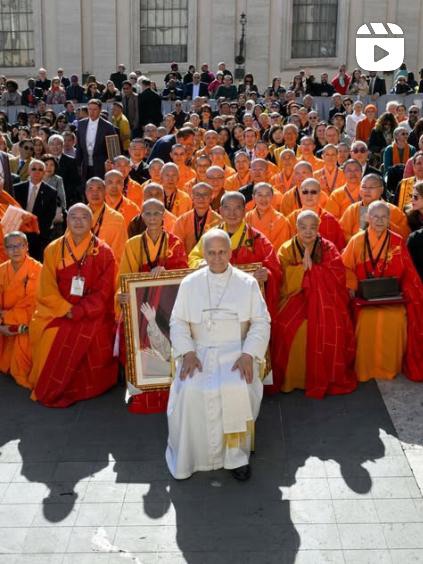 10月29日,教宗在梵蒂岡大廣場舉行公開接見,代表團得以近距離觀禮並與教宗合影。當教宗邀請全場數萬人默禱,祈求和平到來時,廣場瞬間靜默無聲,展現出信仰的虔誠與力量。