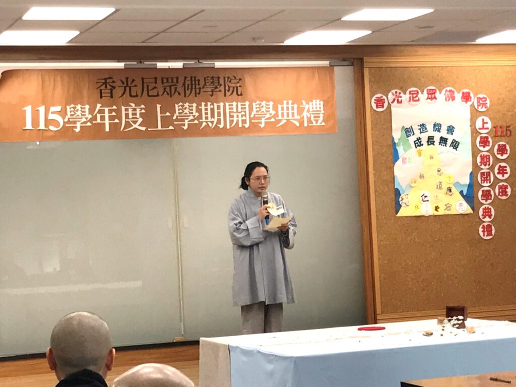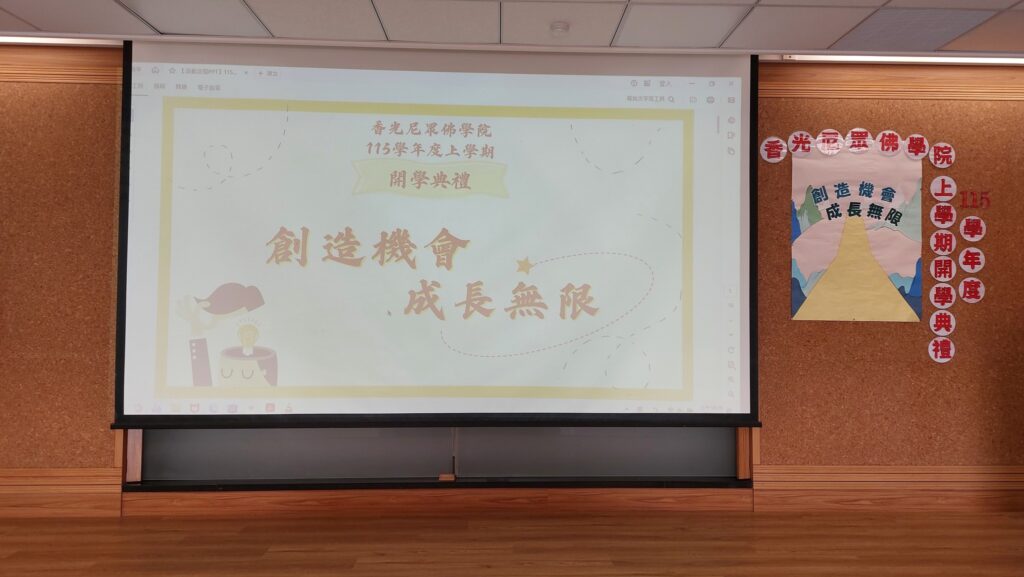 香光尼眾佛學院於115年3月9日假五樓講堂,舉行115學年度上學期開學典禮,主題是「創造機會,成長無限」。