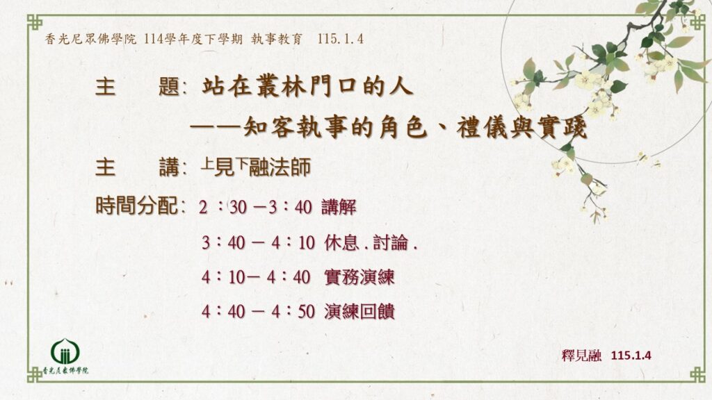但話說回來,僧人住在道場,實踐內修外弘,故每位僧人都可以是知客的最佳人選。